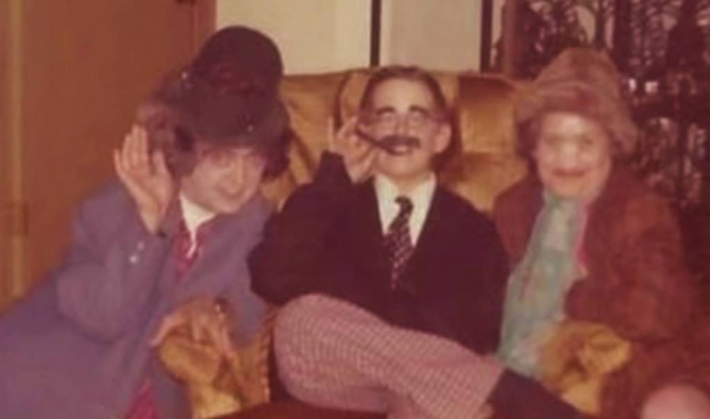 Among my favorite evenings back then were the times when Mom’s sister Zenna was in town from Indiana. Zenna was a prodigious drinker in a family of big drinkers. Years later, in the 1990s, she contracted liver disease and lost a portion of that organ through surgical resection. She quit drinking altogether after that and lived the remaining fourteen years of her life sober. But in the Seventies, Zenna still loved her Screwdrivers and beer, and thus she fit in swimmingly at our house. She was a favorite aunt of mine, one who always saw the humor in life and made the most of it. On the nights when she’d come up to stay, you three would enjoy your cocktails and I’d drink my Spring Grove pop. And at a certain point in the evening, we’d often stage a costume performance party—raiding the upstairs closets for clothes, hogging the bathrooms to apply makeup, then descending the stairs to make our appearances in the sunken dining room. One time, Zenna, Mom, and I transformed ourselves into the Marx Brothers. Zenna and Mom became Chico and Harpo. I cut a paper mustache and eyebrows from black construction-paper, fashioned a pair of round wire-rimmed glasses, and assumed the part of Groucho.